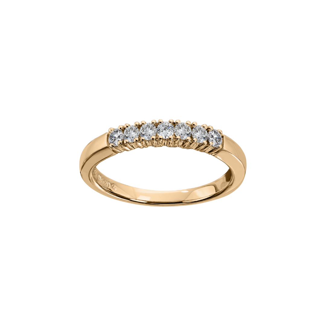 Alliansering i gult gull med 7 diamanter, totalt 0,28 ct. HSi. Pris: 17.320,–
